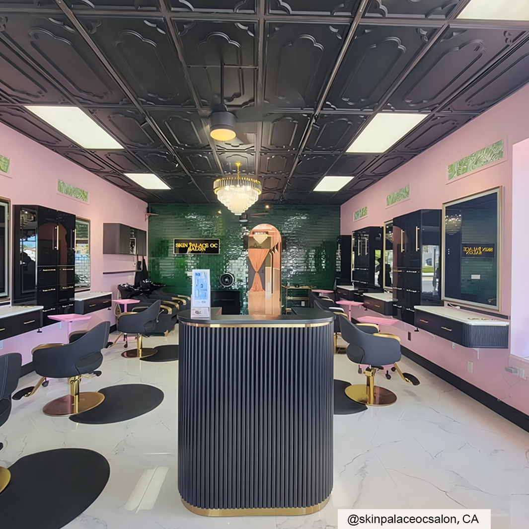 With its rich black finish and vertical tambour detailing, this reception desk brings a refined yet dramatic presence to your entryway or workspace. A sleek, expansive work surface and ample cubby storage offer practical convenience while maintaining graceful proportions. Subtle gold trim along the top edge and toe kick introduces an elegant shimmer that enriches the overall composition.