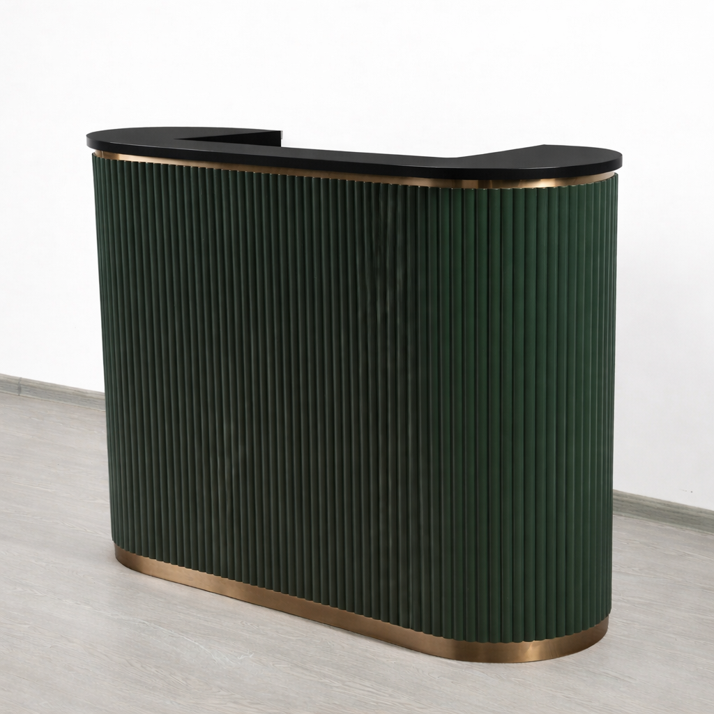 The Mila reception desk brings a warm, composed presence to your entry—defined by refined vertical tambour detailing and clean, modern lines. At 58" wide, it’s a space-smart statement for studios, clinics, salons, and boutique offices—balanced in proportion and designed to elevate first impressions with quiet confidence.